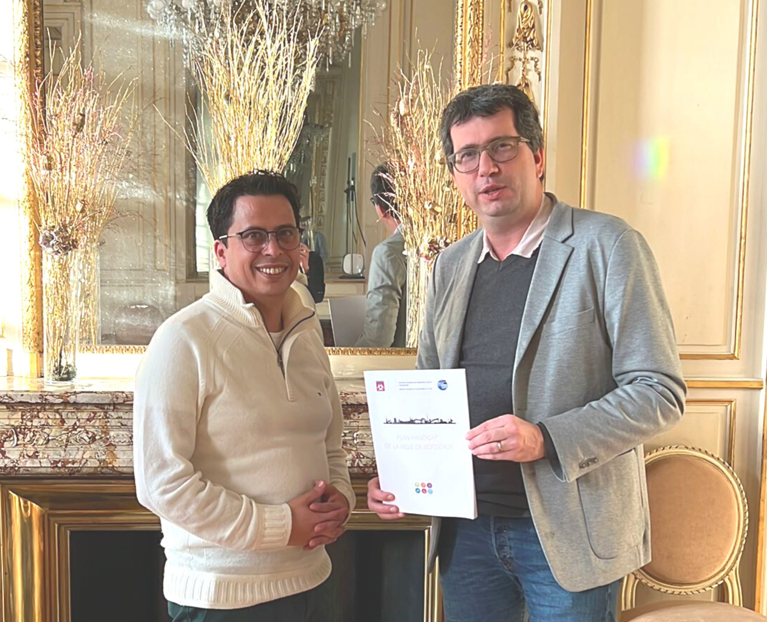 Enfin, aux côtés de Pierre Hurmic, maire de Bordeaux, capitale du Forum mondial de l’économie sociale et solidaire organisé par l’ONU en 2022. Bordeaux pouvait y prétendre tant son maire a favorisé l’implantation d’entreprises de cette veine en ville. Pierre a su attirer les lumières sur Bordeaux autrement qu’à travers de grands projets inutiles comme à l’accoutumée. Quand le congrès des villes bas carbone prime Bordeaux pour son label Bâtiment frugal, c’est une action en phase avec les vrais enjeux actuels, environnementaux et de durabilité, qui est saluée. Le développement en cours de la piétonisation et de la place du vélo s’inscrivent dans cette même philosophie. La définition d’un maire responsable. À l’antithèse de la politique spectacle, Pierre est un maire qui agit sans s’agiter, merci pour son accueil chaleureux. https://twitter.com/MounirSatouri/status/1620100337263869952