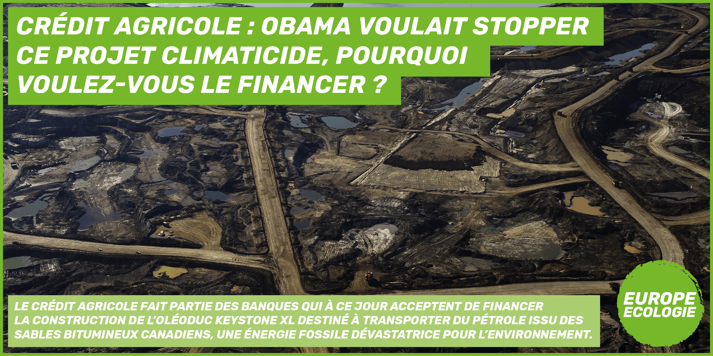 Nous avons co-signé avec d’autres parlementaires européens une lettre adressée aux dirigeants des 16 banques contribuant au financement de la compagnie TransCanada, qui souhaite mettre en œuvre le projet d’oléoduc Keystone XL entre le Canada et les Etats-Unis. Le Crédit Agricole est la seule banque française incriminée.